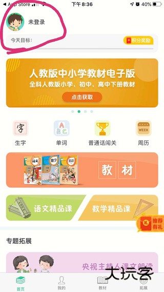1、在本站下载安装人教点读app,进去后显示 未登录