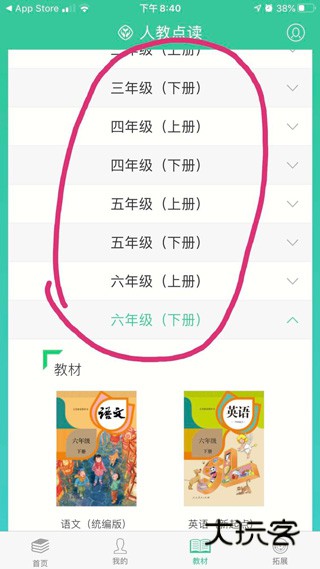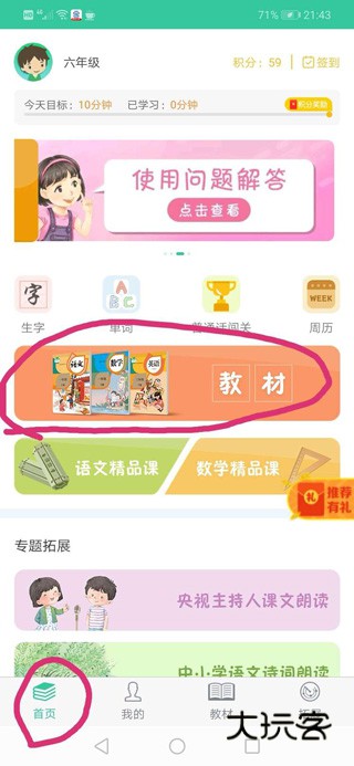 4、登录成功后,进去 首页,然后点击“教材”