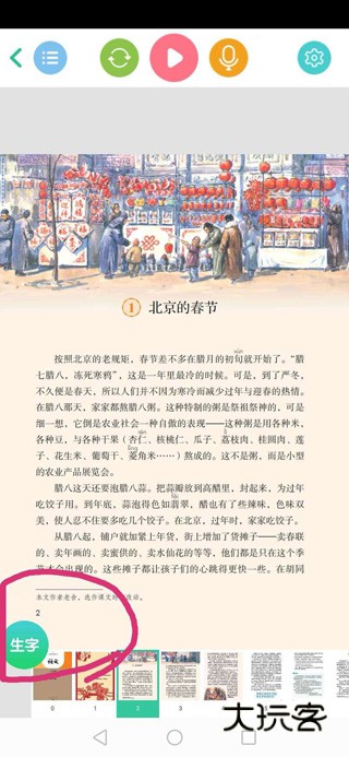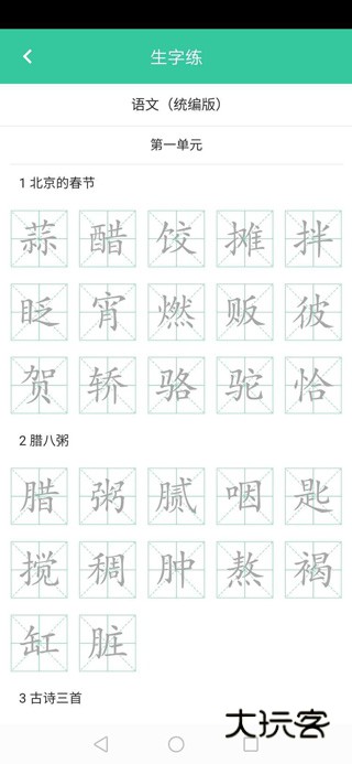 8、点击“生字”进去学习生字。