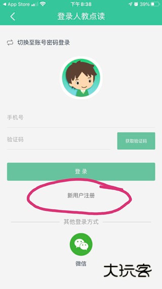 2、点击 未登录 ,进去后选择“新用户注册”