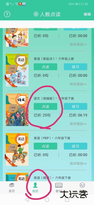 7、下载后,每次登录后点击“我的” ,就可以“点读”进去学习