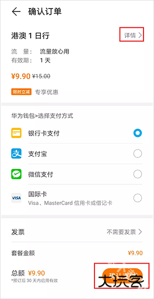 2、选择相应套餐,可以点击详情,查看套餐具体信息,完成支付;