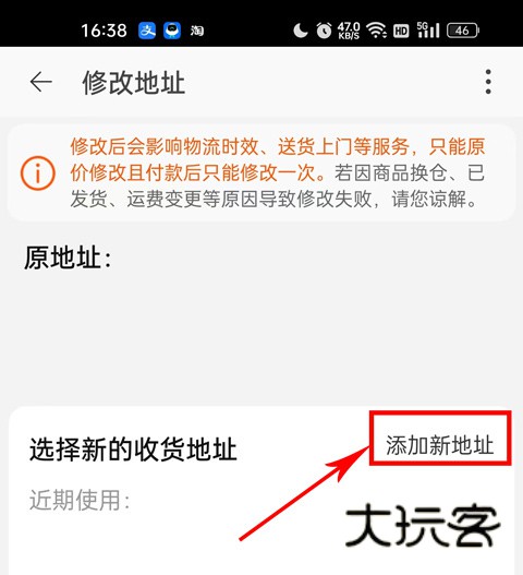 4、然后你就会来到地址修改页面,你可以选择下方的添加新地址;