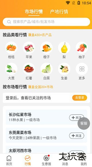 3、登录成功之后,在行情界面可以看到各种农产品的市场行情;