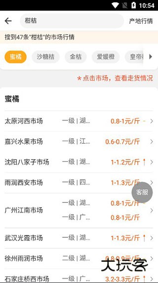4、例如点击柑桔,即可看到它在各个地方的市场行情;
