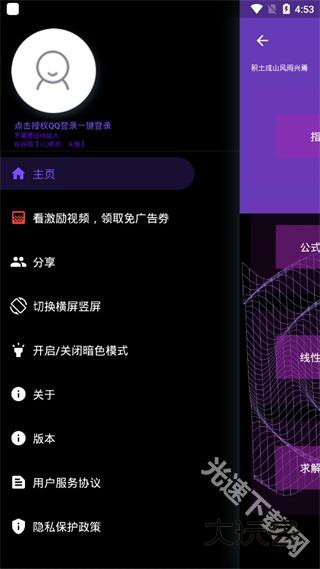 2、在左上角可以进行登入、分享和开启夜间模拟。