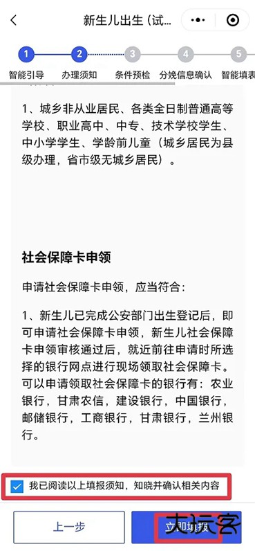 6、阅读办理须知,选择“我已阅读以上填报须知,知晓并确认相关内容,”点击立即填报。