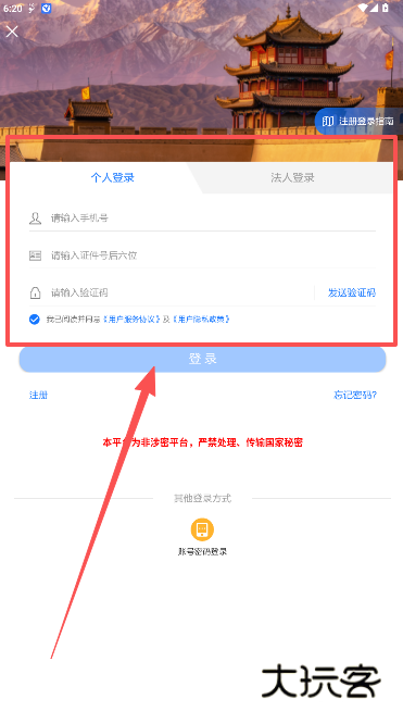 1、确认是个人还是法人的身份注册登录进入。