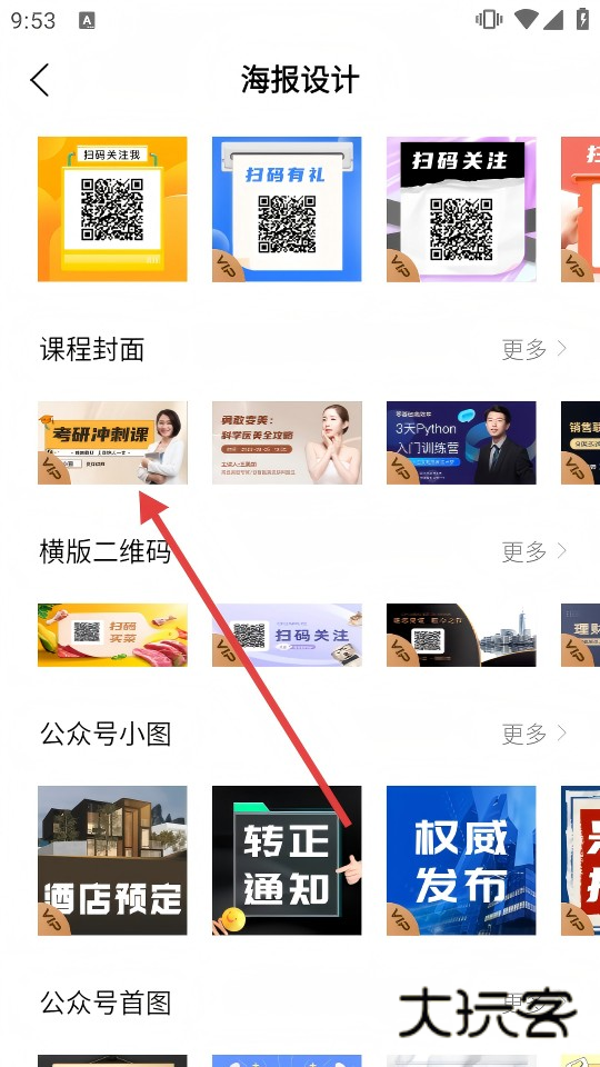 2、在海报设计界面,选择“课程封面”分类下的“考研冲刺课”封面模板。