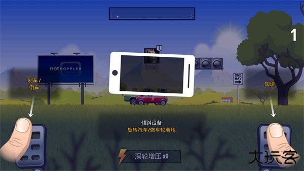 4、操作其实挺直观:屏幕左半部分控制刹车和倒车,右半部分就是油门负责加速前进