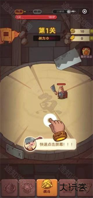 1、过关对战模式,作为游戏主公点击屏幕,击败咸鱼对手。