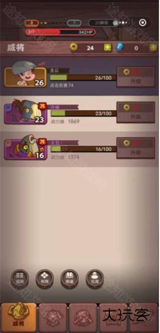 5、注意升级武将,武器盔甲等,提高作战能力,帮助主公过关。