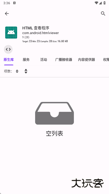 2、点击进入到任何游戏或者软件应用可以查看原生库、服务、活动、广播接收器、内容提供其、权限、元数据等各种信息。往后是统计与快照。