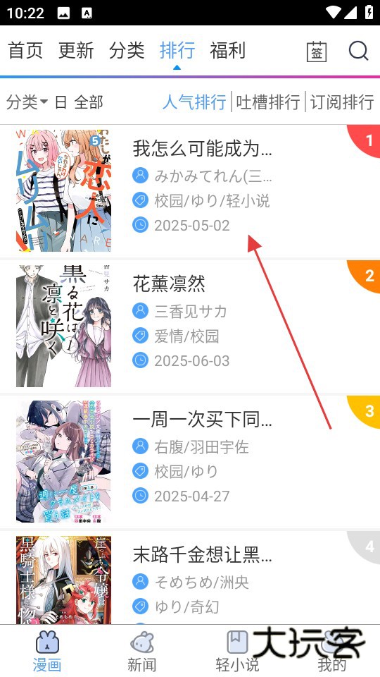 3、返回漫画页面,切换至排行分类,选择人气排行,浏览我怎么可能成为花薰凛然等热门漫画,点击感兴趣作品进入阅读。