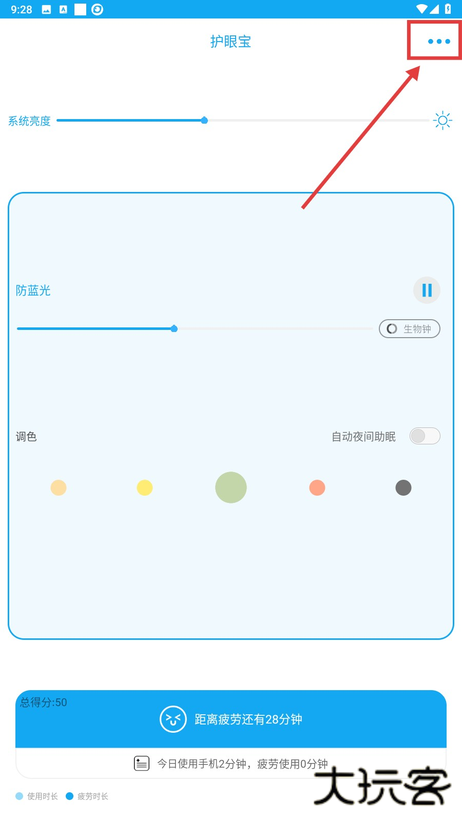2、进入护眼宝主界面后,点击右上角的按钮,便能找到设置入口,方便后续操作哦。