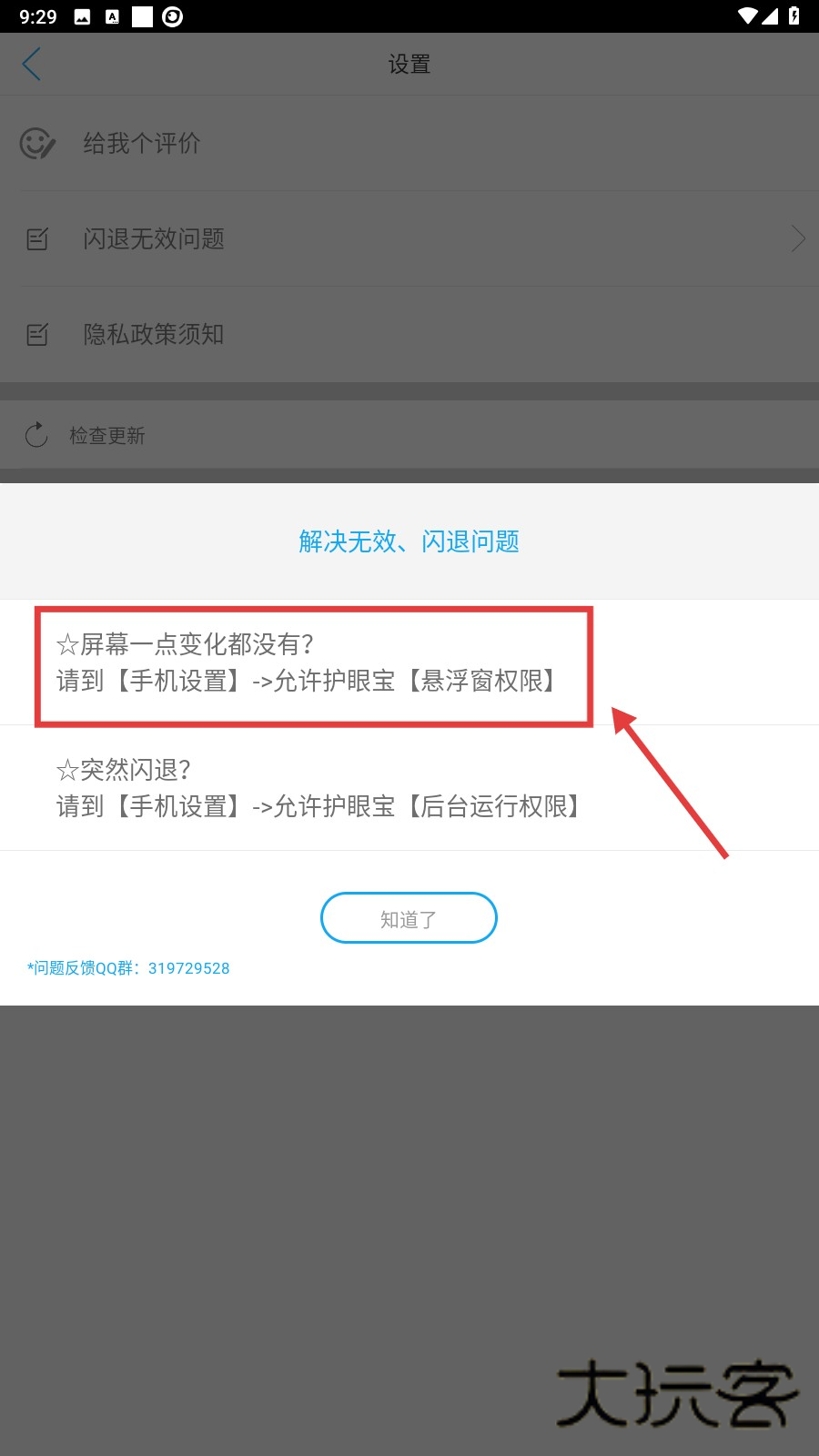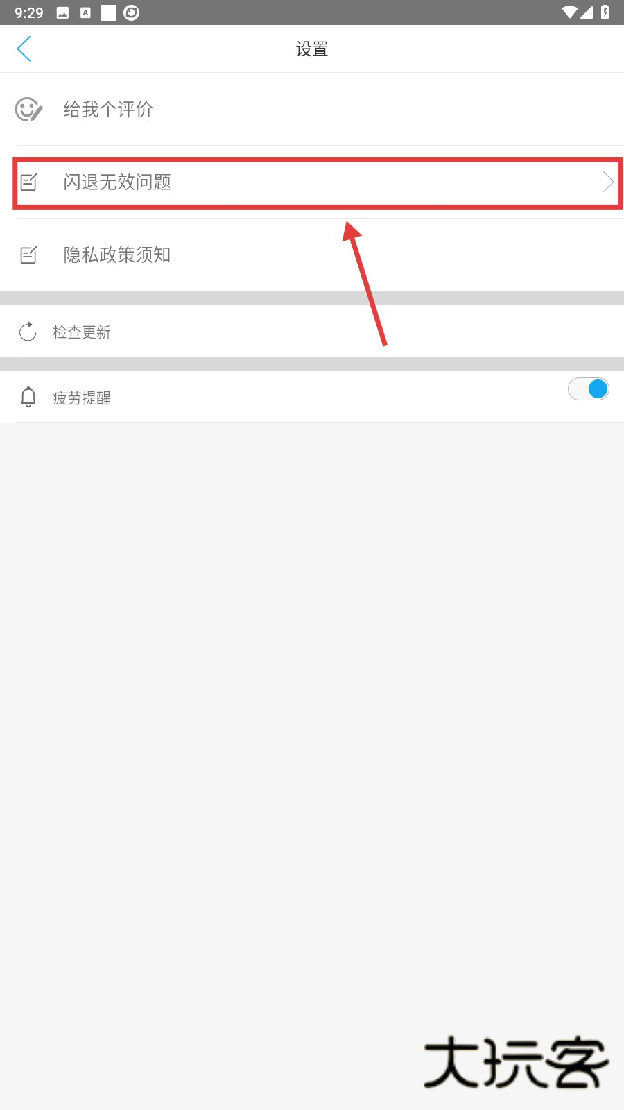 3、在设置页面中,我们点击【闪退无效问题】选项,就能查看一些问题的解决指引啦。