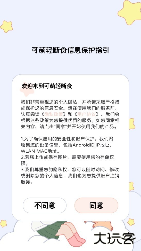 可萌轻断食使用方法1、下载安装可萌轻断食,进入软件后同意隐私政策与用户协议。