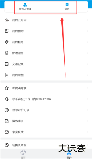 4、个人中心页面支持管理就诊人信息及查收系统推送的相关消息通知。