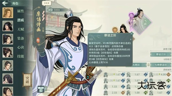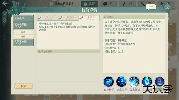 四技能会让对面给我们叠加减益时叠盾,很克制八门遁甲,因为比较肉,作为通玄位时就不是很适合恒山,非常适合刀魔铁石不器等剑意门派,八门遁甲有时为了以抢代ban也会使用白衣通玄。