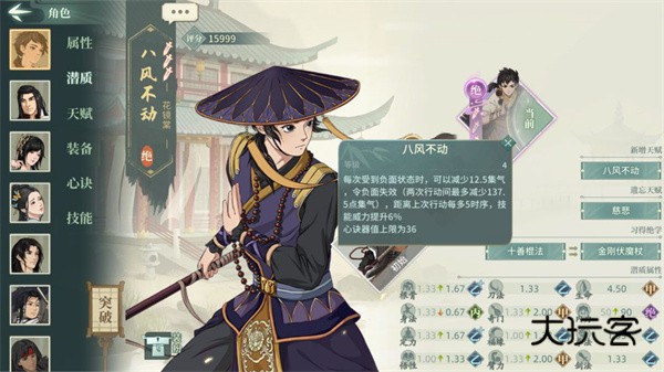 没什么好说的,自带武学很拉胯,但是本身面板很优秀,自带不动明王,但是会喝假酒,也是个优秀的载体,长荒藏渊太极剑都可。