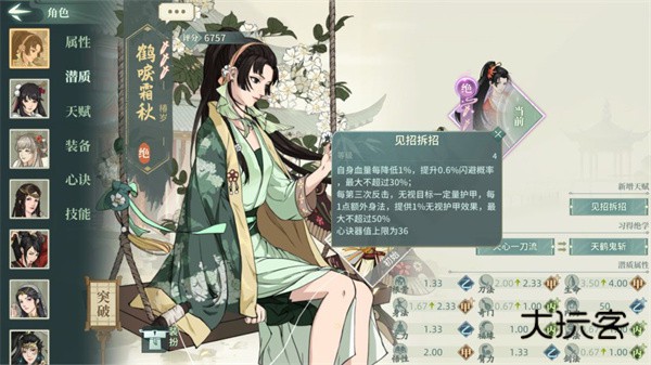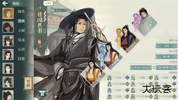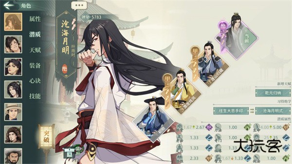 说明:本文中所有例如00,33这类数字代表潜质武学的突破情况,第一个数字代表潜质突破,第二个数字代表武学突破,00代表解锁,33代表潜质三突武学三突