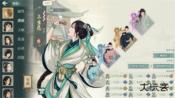 4、50+可加入队友,独具特色的天赋人物刻画。