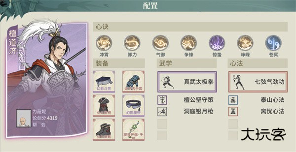 同样是名门大派的一员,东岳华山更是五岳之首,在此建立的华山派自然讲究巍峨厚重、坚韧不息(通俗来讲,就是肉……),咳,华山派注重内功的修炼,也擅长用内功抵挡伤害,因此它的防御是一绝,是一个很好上手的门派。选了这个门派的话,阵容里需要带一两个输出,过图还是没什么压力的(单挑剧情除外)