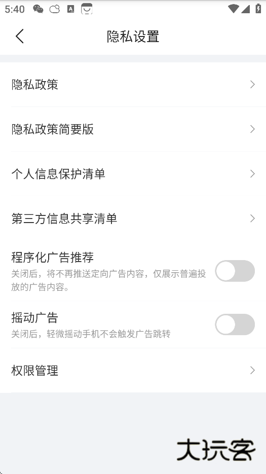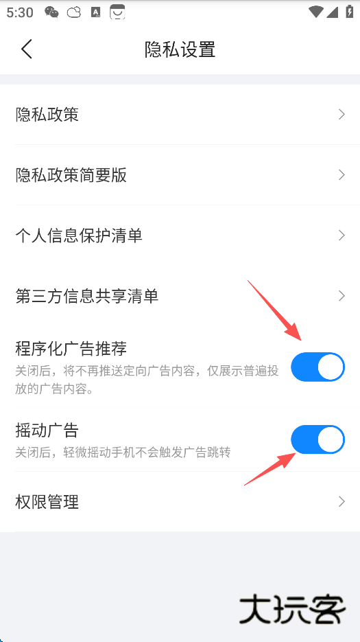 5、这样就关闭了“程序化广告推荐”和“摇动广告”。