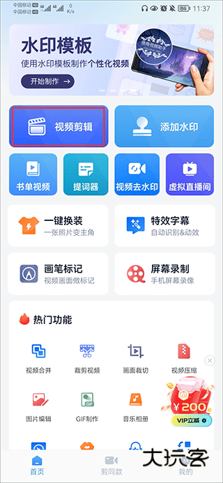 1、打开微商视频助手app后,在首页中点击视频剪辑