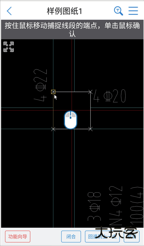 2、运用虚拟鼠标精准捕捉柱子的4个点,完成闭合后选择右下角的“测面积”