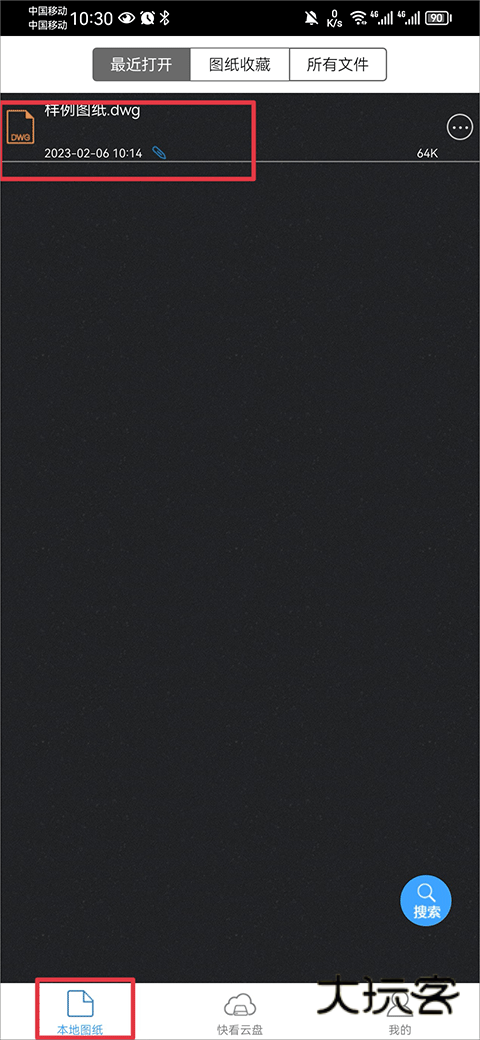 4. 自动导入:自动扫描手机上的CAD绘图文件。不需要手动添加。只要点击图纸打开它