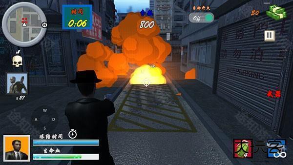 3、有了武器之后,就可以开始战斗了,操作方式非常的简单易上手,左边控制瞄准方向,右边使用武器射击等等;