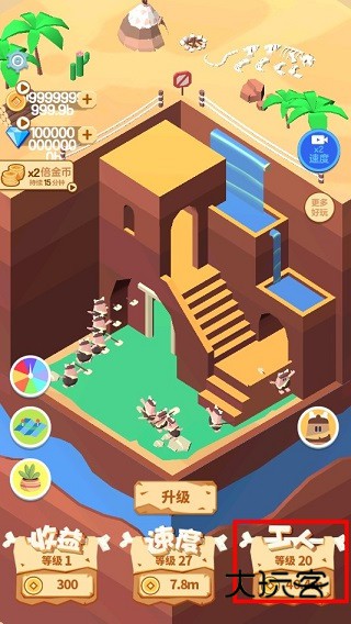 1、雇佣矿工自动开采矿石,所有金币钻石均归玩家所有,可升级效率与收益。