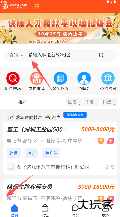 4、和使用其他招聘类找工作软件一样,按地区、推荐或是通过线上的大型招聘会寻求自己心仪的岗位目标。