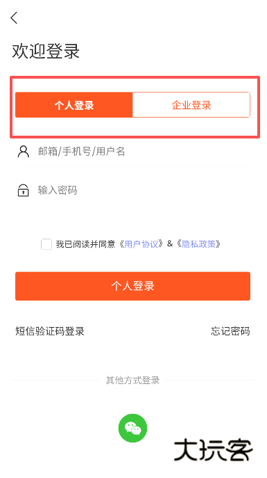 1、登录身份选择个人、企业登录,不同登录方式,所提供的用户界面不同,个人主求职,企业主招聘。