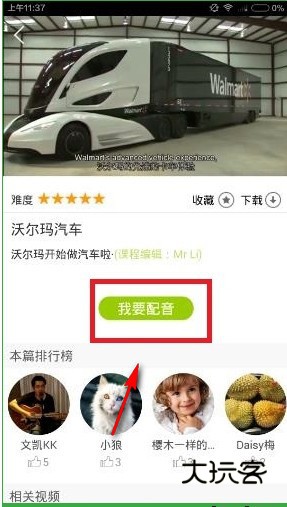 6、用户随便点击一个你感兴趣的视频,点击“我要配音”,就可以进行配音了哦