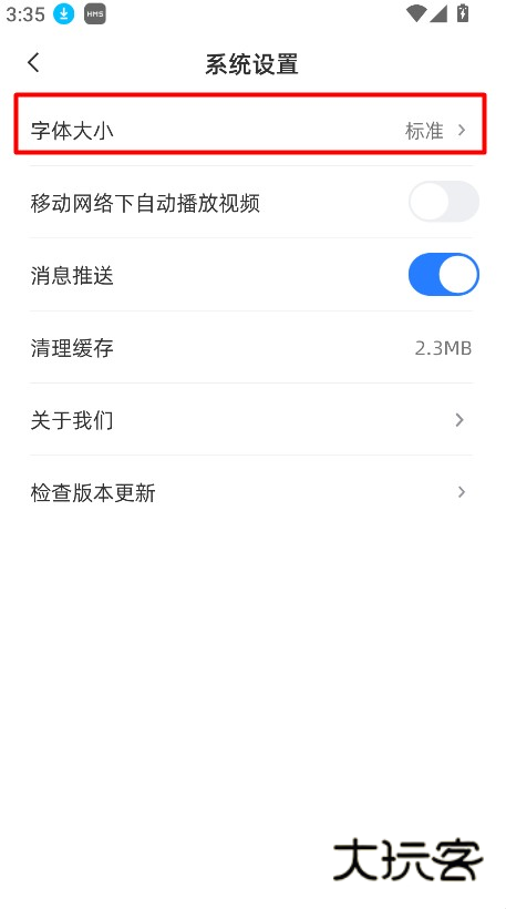 3、在系统设置中选择“字体大小”选项,根据阅读习惯调整字体大小,设置后即可生效。