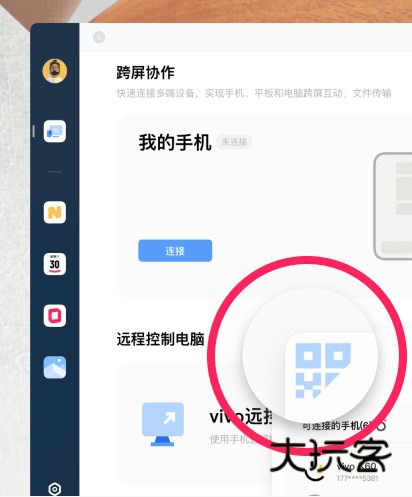 1、在电脑端点击弹窗左上角的“扫码连接”。