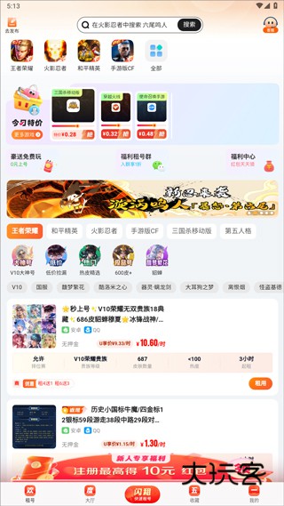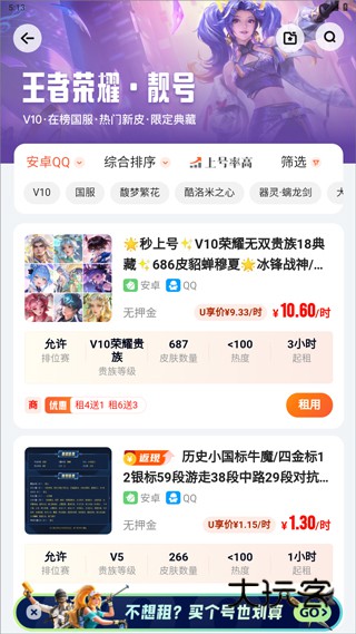2、它有一个特别优惠的账户租赁部分,你可以以最低的价格租用各种高质量的游戏账户,既省钱又省心。