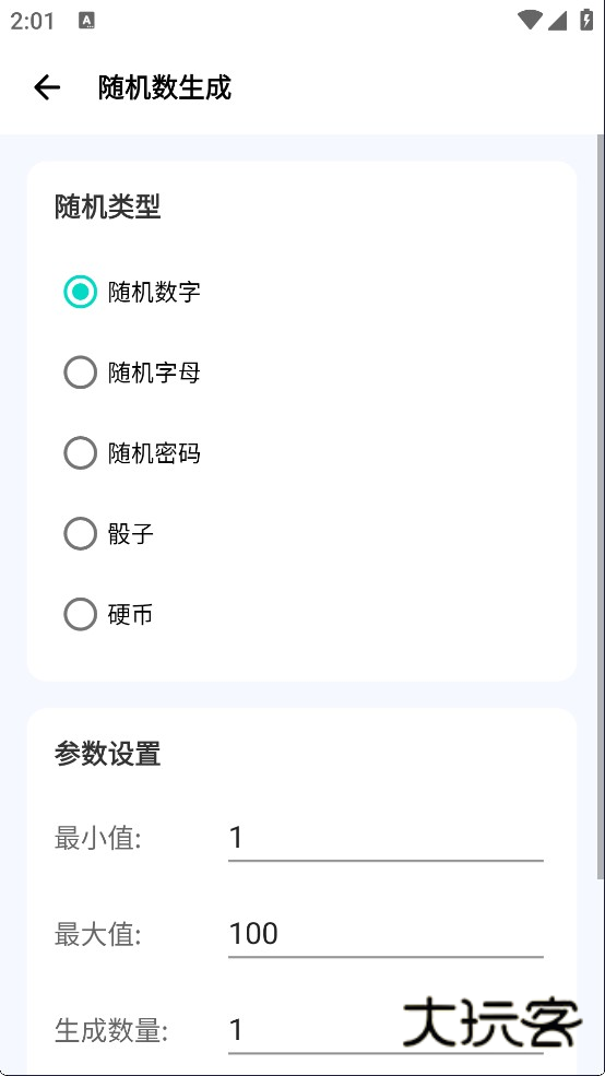 支持随机数字、字母、密码生成,模拟骰子/硬币投掷,可自定义参数。