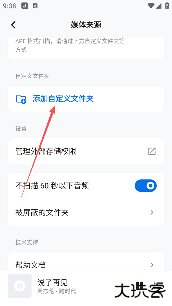 3、还可以添加自定义文件夹来获取本地音乐