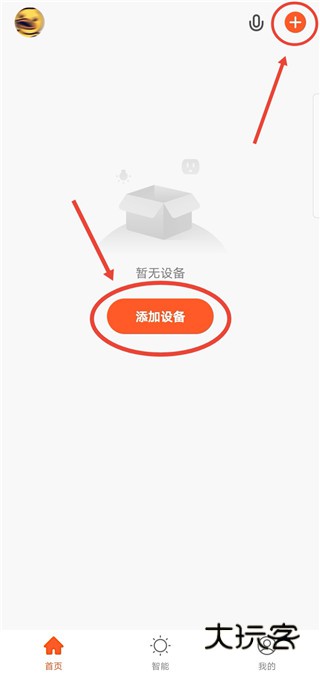 1、这里以配置“ss190”智能音箱为例,先注册登录好软件后点击添加设备或是右上角+号来配置