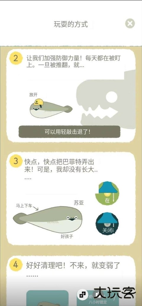 3、之后是加强鱼的防御力量,一旦防御不住可能被推翻,我们可以用轻敲击击退鲨鱼。