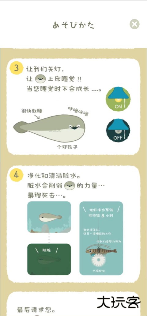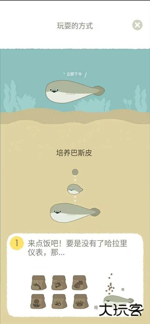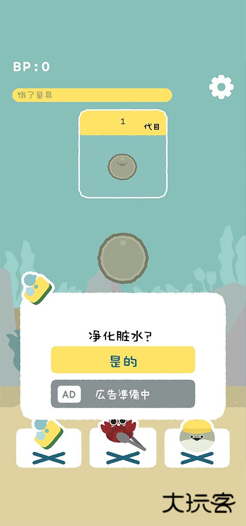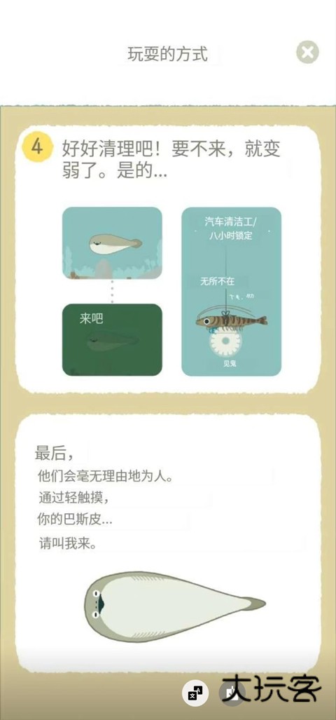 5、整体玩法就是培养一只奇怪的鱼,让它快快长大,保证它一直存活下去。
