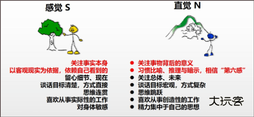 ◆感觉型信赖五官听到、看到、闻到、感觉到、尝到的实实在在、有形有据的事实和信息;直觉型注重“第六感觉”,注重“弦外之音”,许多结论在感觉型的人眼里也许飘忽、不实在。