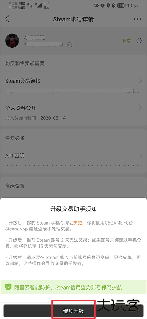 2、升级后,当前steam账号2天无法交易,如果账号未绑定过手机令牌,那将延长至15天无法交易。