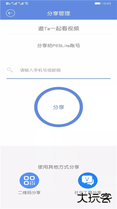 8、选择分享管理,用户可将此设备分享给其他16个用户,如果分享给睿博士现有用户,只需要输入对方的注册手机号或者邮箱,如果分享给新用户,可以通过扫描二维码、微信分享以及复制链接发送给对方。