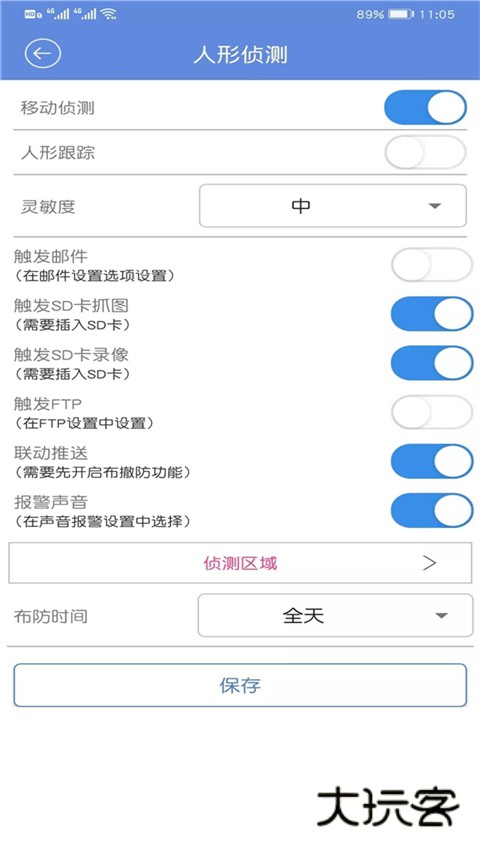 6、 设备设置界面——人形侦测设置,可设置人形侦测触发各项功能