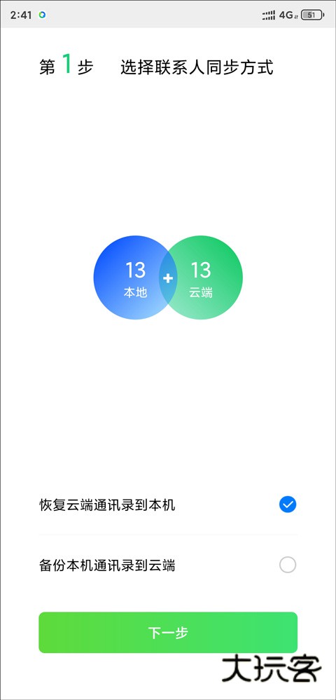 8、选择恢复云端通讯录到本机,即可完成导入。