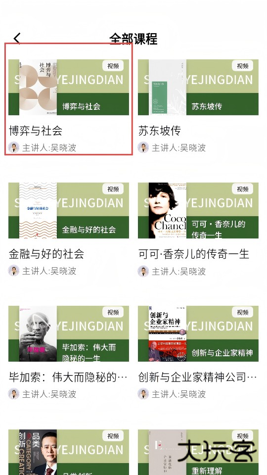 3、在“全部课程”列表中,找到并点击《博弈与社会》课程。
